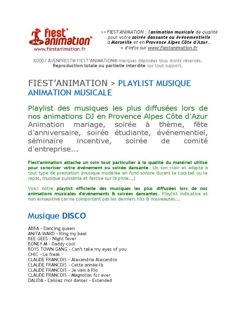 Playlist Musique Animation Soiree Musiciens Musique Populaire